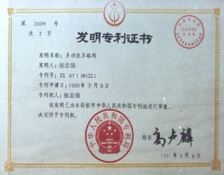 | 祝賀海龍王公司生產(chǎn)的平面閥獲得國家專利 |